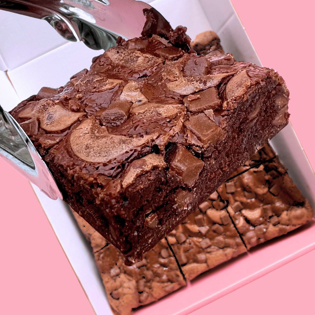 Handmade daily in our Essex kitchen using the finest ingredients, every 5★ rated brownie is baked to perfection – firm on the outside, gooey and velvety in the centre, with rich flavour running through every bite.